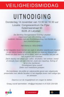 Een infomiddag van de Stichting Georganiseerd Overleg Lelystad in samenwerking met de Politie en de Brandweer: Thema is veligheid.